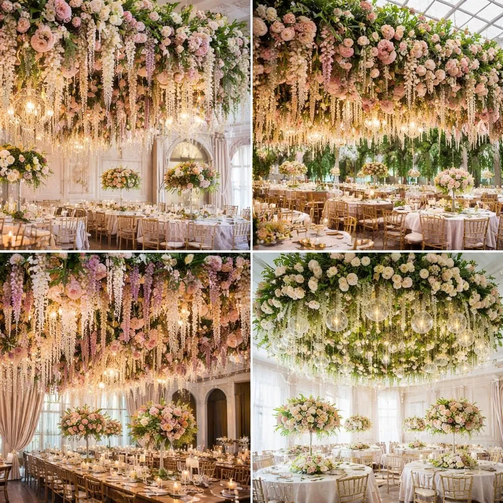 4. Hanging Floral Installations and Flower Ceiling Canopies